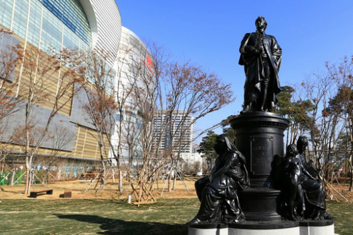 이 작업에는 독일 마이스터(장인)들도 참여했다. 롯데에 따르면 높이 5.15 크기 동상을 제작, 운반·설치하는 데 16억원이 들었다. 롯데월드타워의 괴테 동상은 30일 일반에 공개된다.