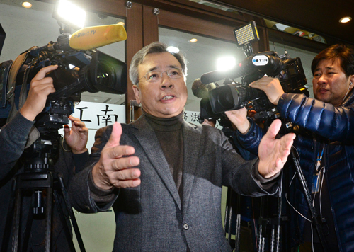 | 출근하는 박 특검 박근혜·최순실 게이트 수사를 맡은 박영수 특별검사가 4일 서울 서초구에 있는 자신의 변호사 사무실로 출근하며 기자들의 질문에 답하고 있다. 남정탁 기자 |