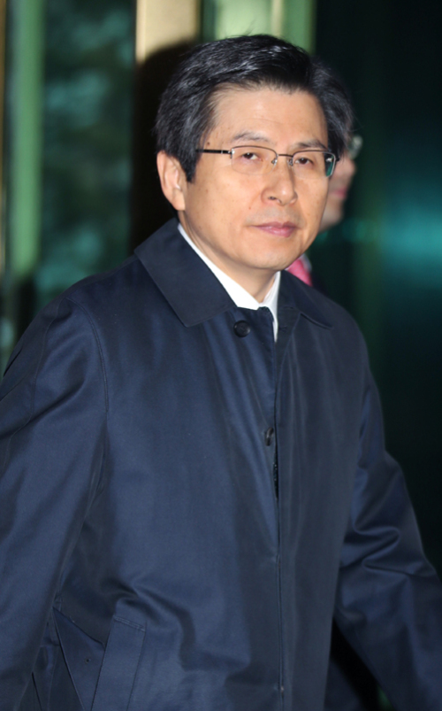 | 박근혜 대통령 탄핵안 표결을 하루 앞둔 8일 오전 황교안 국무총리가 정부서울청사로 출근하고 있다. 탄핵안이 가결되면 황 총리가 박 대통령의 권한을 대행하게 된다. 연합뉴스 |