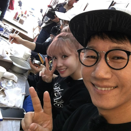공개된 사진 속에는 지난 4일 SBS 예능프로그램 '일요일이 좋다-런닝맨'에 출연한 트와이스가 게스트 출연 당시 함께 조개구이집에서 식사를 하고 있는 모습이 담겨 있었다.