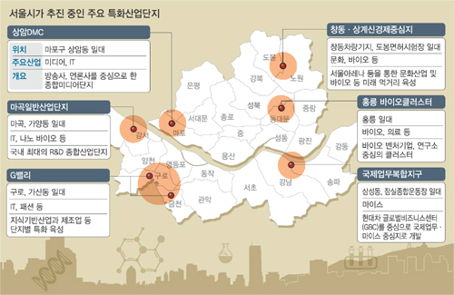 박원순 서울시장 취임 이후 서울시는 산업구조 개편을 본격화하는 중이다. 권역별로 산업을 특성화해 도시 전역이 독자적 경제 역량을 갖추는 것이 핵심이다. 서남권은 연구개발(R&D)에 특성화된 마곡지구와 G밸리 등이, 동남권은 마이스(MICE)산업을 중심으로 한 국제교류복합지구 조성 등의 프로젝트가 활발히 진행되고 있다. 서북권은 이미 상암DMC를 중심으로 미디어산업이 자리를 잡았다.