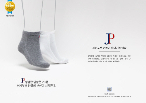 싹스원이 개발한 ‘JP키높이겸 다기능 양말’은 신발에서 사용되던 기능성 깔창을 양말 내부에 착용할 수 있도록 이중구조로 고안된 제품이다. 작은 키를 보정하는 키높이 기능은 물론이고, 평발과 시린 발 등 발과 관련된 고민도 해결할 수 있는 것이 특징이다.