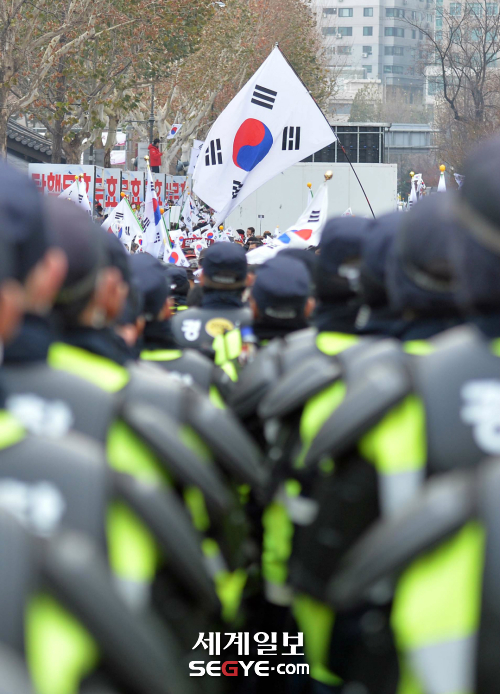 [포토] 경찰과 대치중인 박사모 입력 : 2016-12-17 11:49:24 수정 : 2016-12-17 11:49:24 구글 네이버 유튜브 8차 촛불집회가 열리는 17일 오전 서울 안국역에서 박근혜 대통령 팬클럽 박사모(박근혜를 사랑하는 모임) 단체들이 태극기를 들고 박근혜 대통령 탄핵안 국회 가결 및 탄핵 반대를 외치고 있다.한윤종 기자 hyj0709@segye.com Copyright ⓒ 세계일보. 무단 전재 및 재배포 금지 세계닷컴 한윤종