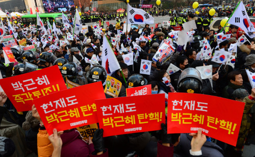 [포토] 박근혜 탄핵 찬반 촉구 집회 입력 : 2016-12-17 17:21:37 수정 : 2016-12-17 17:21:37 구글 네이버 유튜브 17일 오후 서울 광화문광장에서 박근혜 대통령 퇴진을 촉구하는 8차 촛불집회에 참가한 시민들 앞으로 박근혜 대통령 탄핵 무효를 촉구하는 보수단체 회원들이 행진을 하고 있다. 남정탁 기자 jungtak2@segye.com Copyright ⓒ 세계일보. 무단 전재 및 재배포 금지 Cube 남정탁