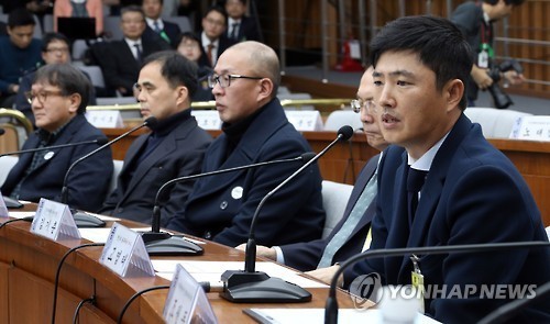 | 고영태 전 더블루케이 이사(오른쪽)가 지난 7일 오후 국회에서 열린 최순실 국정농단 의혹 진상규명을 위한 국정조사 특위 2차 청문회에서 의원들의 질의에 답변하고 있다. |