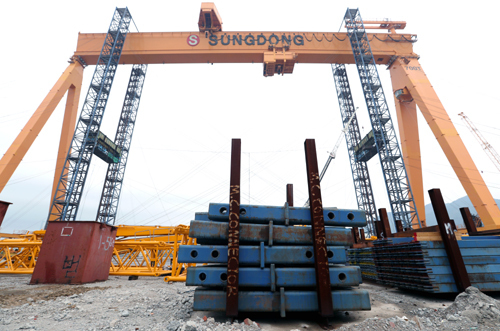| 철거되는 크레인 19일 경남 창원시 마산회원구 성동산업 마산조선소 터에 남아 있던 700t 규모 골리앗 크레인의 철거작업이 진행되고 있다. 창원=연합뉴스 |
