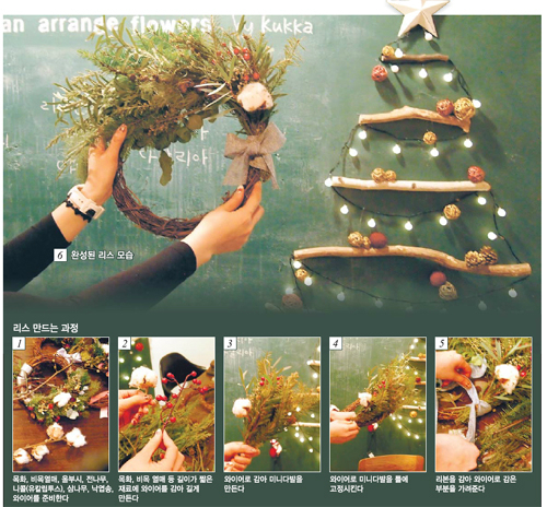 최근 서울 용산구에 위치한 꽃 브랜드 꾸까에서 만난 손지원 플로리스트는 “‘트리는 안 해도 리스는 한다’고 할 정도로 리스는 인기”라면서 “큰 공간과 비용을 들이지 않더라도 리스 하나로 크리스마스 분위기를 물씬 풍길 수 있다”고 리스 이야기를 풀어놨다.