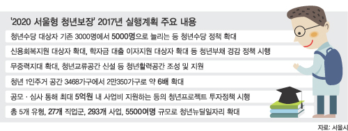 서울시는 26일 중장기 청년정책 기본계획인 ‘2020 서울형 청년보장’의 2017년 실행계획을 발표했다. 불황 속에서 희망을 잃어가는 청년들에게 ‘설자리·일자리·살자리·놀자리’의 4대 분야를 지원해 주는 정책으로 청년활동지원사업(청년수당)은 실행 여부를 놓고 정부와 극심한 갈등을 빚었고 결국 1회 시행 후 복지부의 직권 취소 명령으로 지급이 중지됐었다.