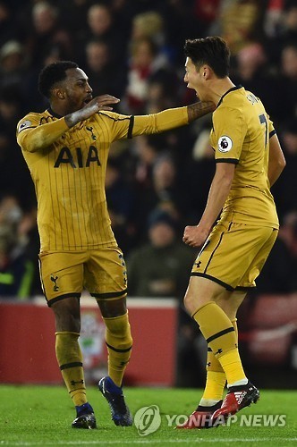| 잉글랜드 프리미어리그 토트넘의 손흥민(오른쪽)이 29일(한국시간) 영국 사우샘프턴 세인트 메리스 스타디움에서 열린 사우샘프턴과 원정경기에서 교체 출전해 2-1로 앞선 후반 40분 쐐기 골을 터뜨린 뒤 기뻐하고 있다. |