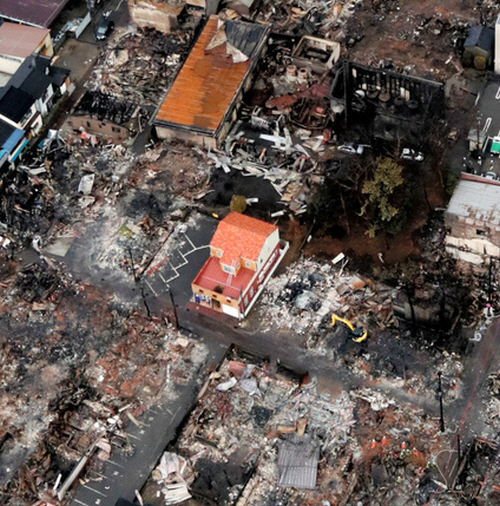 화재 당시 가나자와 씨는 '주위가 불바다로 변해 가족과 함께 대피'했고, 불길이 잡힌 후 돌아와 보니 다른 집은 모두 전소했지만 그의 집은 유리에 금이 가고 에어컨 실외기에 녹이 슨 것 외엔 별다른 피해가 없었다.