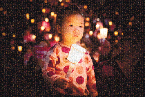 아이의 두 눈은 진지하다. 어울리지 않게 깊은 생각에 잠겨 있는 어린 얼굴을 촛불이 환하게 비춘다. 귀여운 얼굴에 딱지들이 더덕더덕 붙어 있다. 범상치 않아 키워 보았더니 ‘탄핵’ ‘퇴진’ ‘구속’으로 얼룩진 모자이크다. 세계일보 사진기자들이 최근 토요일마다 취재한 이미지들로 꾸민 아이의 촛불이다. 탐욕과 추문으로 얼룩졌던 날들이 저무는 오늘, 자정이 넘으면 저 아이의 눈빛도 사랑으로 빛날 수 있을까. 바람 불어도 꺼지지 않을 가슴속 촛불로, 아이와 더불어 새날 맞을까. 액일랑 여기 두고 잘 가라, 병신년(丙申年).