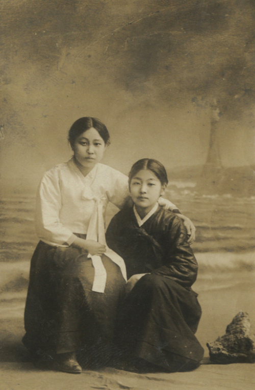 | 1922년 최승희와 서모(庶母). 최승희의 숙명여자고등보통학교 입학 당시 모습이다. |
