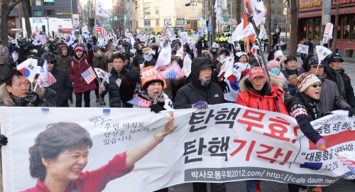 [포토] '박사모' 등 보수단체, 박근혜 대통령 탄핵 기각 촉구 행진 입력 : 2017-01-14 17:39:34 수정 : 2017-01-14 17:39:34 구글 네이버 유튜브 14일 오후 서울 청계광장에서 '박사모' 등 보수단체 회원들이 박근혜 대통령의 탄핵 기각을 촉구하며 행진하고 있다. 이제원 기자 Copyright ⓒ 세계일보. 무단 전재 및 재배포 금지 Cube 이제원