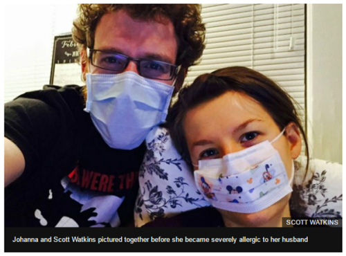 미국 미네소타주에 사는 조안나 왓킨스(39)는 남편 스콧 옆에 앉을 수 없다. MCAS 때문에 남편이 옆에 오기라도 하면 알레르기 반응을 일으켜서다. 자신을 둘러싼 세상 모든 것에 알레르기 반응을 보이기 때문에, 그는 수년간 창문이 없는 집안 다락방에서 살아와야 했다.