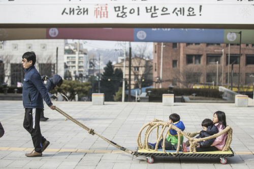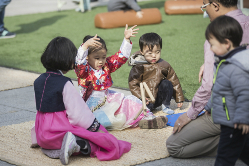 | 서울 서초구 국립국악원 야외광장에서 짚신동차끌기를 즐기는 나들이객들. 국립국악원 제공 |
