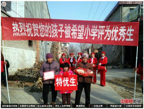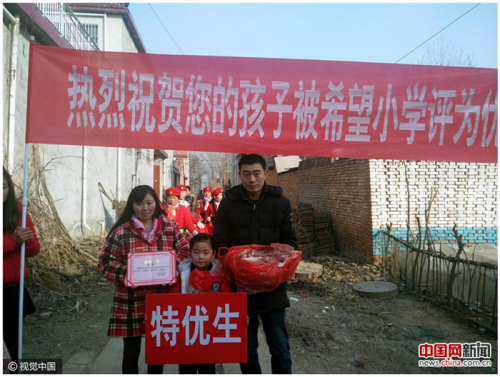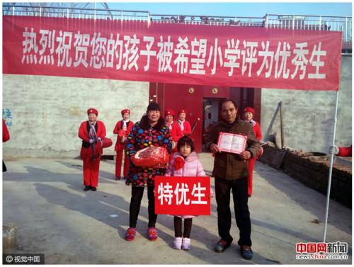 담당 교사, 아이와 사진 찍은 한 부모는 “그렇지 않아도 고기를 사야 했다”며 “아이가 점수를 잘 받은 덕에 돈을 아끼게 됐다”고 인민망에 전했다.