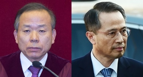 | 김이수 헌법재판관(왼쪽)과 김규현 청와대 외교안보수석 |