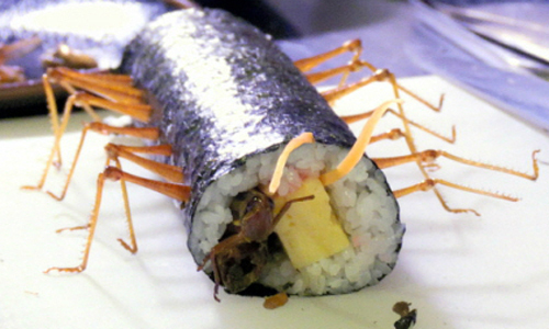 | 지네와 닮은 모습의 '곤충 김밥' |