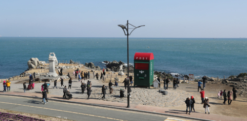 | 설 연휴 마지막 날인 지난달 30일 해돋이 명소인 울산 간절곶 해안의 명물인 대형 우체통 주변이 포켓몬GO의 포켓볼을 얻을 수 있는 ‘포켓스톱’으로 알려지면서 포켓몬GO 이용자 등으로 붐비고 있다. 세계일보 자료사진 |