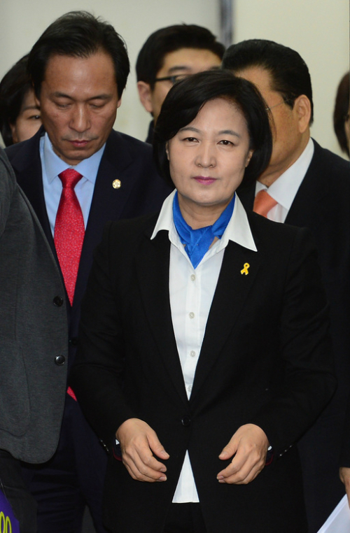 더불어민주당 추미애 대표가 15일 오전 서울 여의도 국회 대표 회의실에서 열린 최고위원회의에 모두발언을 하고 있다. 남정탁 기자 |