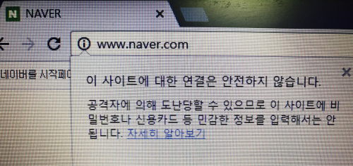 그렇다 보니 현재 크롬 브라우저에서는 국내 대부분 사이트가 '안전하지 않은 사이트'라는 경고를 받고 있다.