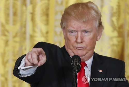| 도널드 트럼프 미국 대통령이 16일(현지시간) 백악관에서 러시아 유착설 등 정국 현안에 대해 기자회견을 하고 있다. |