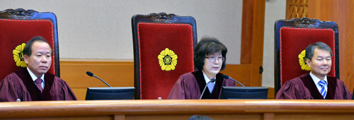 단호해진 재판관들 입력 : 2017-02-20 18:57:21 수정 : 2017-02-20 18:57:21 구글 네이버 유튜브 이정미 헌법재판소장 권한대행(가운데)이 20일 박근혜 대통령 탄핵심판 15차 변론 시작에 앞서 모두발언을 하고 있다. 왼쪽은 김이수, 오른쪽은 이진성 재판관이다. 사진공동취재단 Copyright ⓒ 세계일보. 무단 전재 및 재배포 금지 세계일보 허슬기