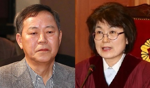 | 박근혜 대통령 대리인단의 김평우 변호사(왼쪽)와 헌법재판소장 권한대행 이정미 재판관. |