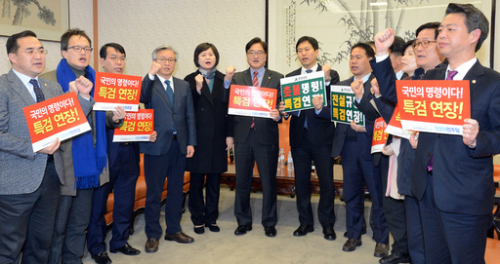 황 대행의 거부 방침이 기정사실로 여겨지며 야권에 남는 카드는 국회 본회의에서 특검법 개정안을 처리하는 방법밖에 없다. 그러나 자유한국당이 “한마디로 날치기 발상이고 반헌법적 작태”(정우택 원내대표)라며 강하게 반발하고 있다. 법안 통과의 길목을 지키는 권성동 법사위원장과 정 의장도 “여야 합의 없이는 어렵다”는 입장이어서 특검 연장은 현실적으로 불가능해졌다. 야 4당 원내대표가 23일 찾아가도 정 의장 마음을 돌릴 가능성은 희박하다는 관측이다.