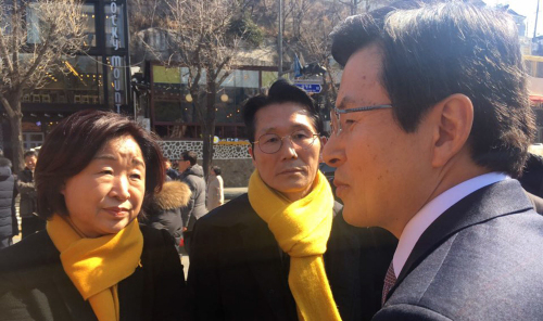 | 황교안 대통령 권한대행의 특검 기간 연장 승인을 요구하며 서울 종로구 삼청동 국무총리 공관 앞에서 농성 중인 정의당 심상정 대표(왼쪽)가 26일 황 권한대행(오른쪽)을 만나 연장 승인을 촉구하고 있다. 정의당 제공 |