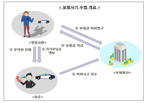 차주가 이를 허락하면 영업직원들은 허위의 사고 장소, 시각, 내용 등을 알려주고 이러한 내용대로 보험사에 허위 사고를 접수하도록 유도하는 수법을 이용했다.