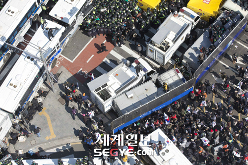 [포토] 헌재로 집입하는 보수단체 입력 : 2017-03-10 13:55:28 수정 : 2017-03-11 22:20:01 구글 네이버 유튜브 10일 오후 서울 종로구 재동 헌법재판소 앞에서 박근혜 대통령의 탄핵이 인용된 데 항의하는 보수단체 회원들이 차벽을 부수고 헌재 방향으로 진입하고 있다. 한윤종 기자 hyj0709@segye.com <사진공동취재단> Copyright ⓒ 세계일보. 무단 전재 및 재배포 금지 세계닷컴 한윤종