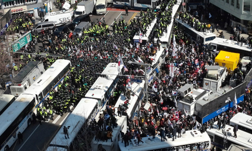 태극기 집회 참가자들은 헌재의 탄핵 인용이 발표되자 허탈함을 감추지 못했다. 몇몇 이들은 눈물을 펑펑 흘렸고, 더러는 “계엄령을 선포해서 다 쓸어버리자”, “대한민국이 망했다. 빨갱이 공산주의자들의 손에 넘어갔다” 등의 과격한 발언을 쏟아냈다. 이후 30분쯤 흐른 오전 11시50분쯤부터 태극기 집회는 불법 폭력 시위로 변질됐다. 단상에 오른 탄기국 집행부들이 “질서를 지켜야 한다. 우리가 폭력적으로 변하면 저들은 우리를 ‘폭도’라고 부를 것”이라며 폭력 사용에 대한 자제를 요청했으나 소용없었다. 대다수의 집회 참가자들이 헌재 방면으로 행진하기 위해 안국역 사거리에서 헌재 방면으로 둘러쳐진 폴리스라인을 죽봉과 각목, 태극기봉 등으로 두드리고, 경찰 차벽을 부수고 경찰차에 오르기 시작했다. 그야말로 아수라장이 따로 없을 만한 ‘광기’였고, 그들은 ‘폭도’나 다름 없었다.