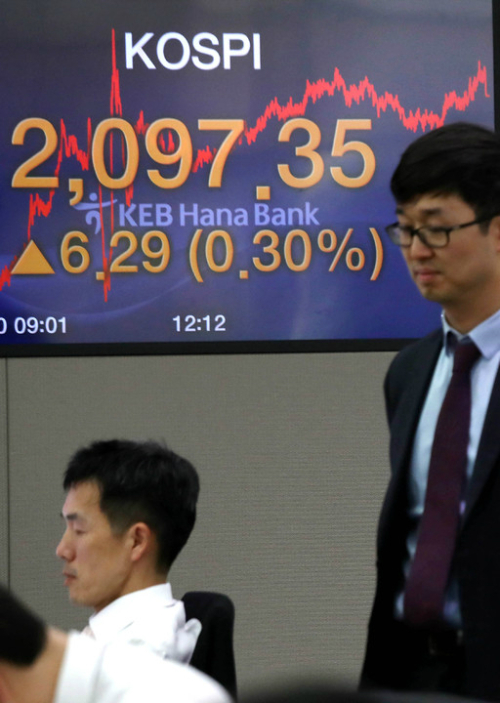 이날 코스피는 전거래일보다 6.29포인트(0.30%) 오른 2097.35로 마쳤다. 코스피는 탄핵심판 선고 결과에 대한 우려로 전날보다 0.11% 내린 2088.67로 개장했다. 이날 오전 11시 이정미 헌법재판소 소장 권한대행이 선고문을 읽어내려가자 주가는 이 소장의 한마디 한마디에 민감하게 반응하며 등락을 반복했다. 이 소장이 일부 탄핵소추 사유를 인정하지 않을 때마다 지수는 하락반전했다. 하지만 대통령 파면이 확정된 오전 11시21분 코스피는 순식간에 2100선을 돌파해 2102.05를 찍었다. 이후 상승분을 다소 반납하긴 했지만 내내 좋은 분위기가 이어져 상승마감했다.