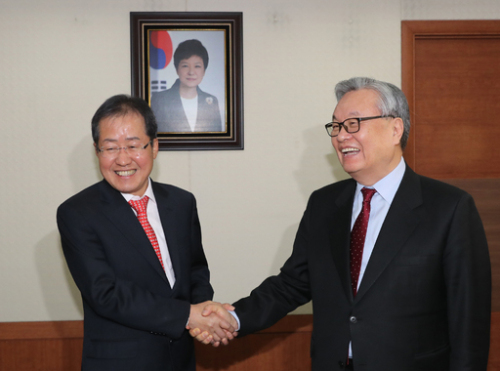 한국당은 이날 오전 당내 유력 대선주자로 꼽히는 홍준표(사진) 경남도지사의 ‘당원권 정지’ 징계를 대법원 판결까지 일시적으로 풀고 대선 출마의 길을 터줬다. ‘황 권한대행-홍 지사’의 대결을 통해 당내 경선을 흥행시키기 위한 조치로 풀이된다. ‘성완종 리스트’ 족쇄가 풀린 홍 지사는 곧 대선 출마를 선언할 것으로 보인다. 홍 지사 측은 “징계가 풀렸으니 움직일 여지가 생겼다”고 말했다.