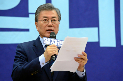 | 더불어민주당 문재인 전 대표가 13일 오전 서우 여의도 국회 의원회관에서 열린 일자리위원회 출범식에 참석해 인사말을 하고 있다. 남정탁 기자 |