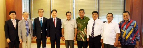 김병원 농협중앙회장(사진 왼쪽)이 지난 14일 인도네시아 자카르타 소재 인도네시아협동조합연합회 본관 접견실에서 인도네시아협동조합연합회(DEKOPIN) 누르딘 할리드 회장(사진 오른쪽)을 만나 양국 협동조합간 협력방안에 대해 이야기를 한 뒤 기념촬영을 하고 있다.