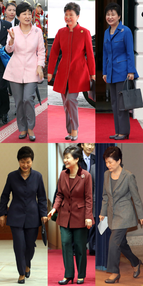 박 전 대통령은 '패션 정치'라는 말을 낳을 정도로 상황에 따라 다른 스타일로 자신의 심정을 나타내 왔다.