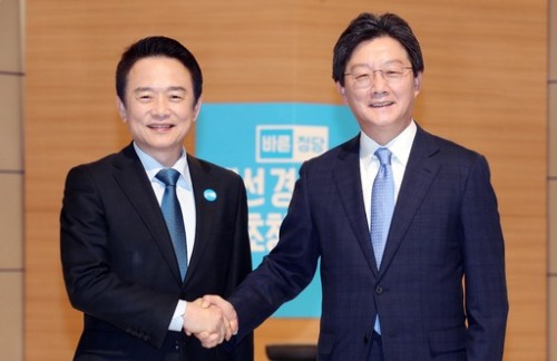 토론회에서 두 후보는 우선 ‘보수후보 단일화’론을 두고 격돌했다. 남 후보는 자유한국당과도 연대할 수 있다고 한 유 후보를 겨냥해 “한국당은 국정농단세력이고 최순실 옹호당이다. 우리는 그 세력과 연대하지 않겠다고 탈당한 것 아니냐”고 지적했다. 유 후보는 “헌법재판소의 결정을 불복하거나 친박(친박근혜)계가 미는 후보가 한국당 대선후보가 되면 연대를 하지 않을 것”이라고 밝혔다. 유 후보의 반격도 만만치 않았다. 유 후보는 “경기도 내 제1연정위원장이 한국당 소속이다. 남 후보는 한국당과의 연정은 안 한다면서 왜 경기도에서는 하고 있느냐”고 따졌다. 남 후보는 “유 후보는 처음에는 국민의당과는 연대하지 않겠다고 했다가 최근에는 국민의당과는 좋게 가시는 것 같다”고 꼬집었다.