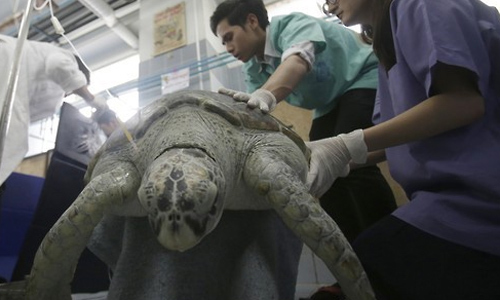 21일(현지시간) 태국 방콕포스트 등 외신들에 따르면 쭐라롱껀대 수의학부 해양동물연구소 측이 바다거북의 상태가 나빠져 회생을 장담할 수 없다고 밝혔다.