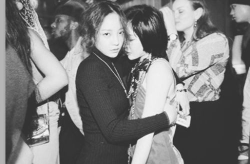 사진 속 구하라와 가인은 서로 밀착하고 있으며 구하라는 카메라를 그윽하게 바라보고 있다.
