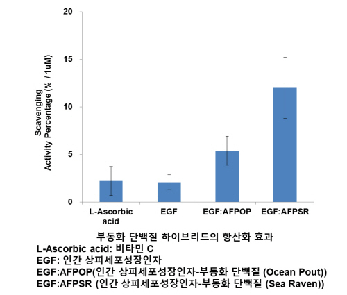 또한 이 부동화 단백질 하이브리드가 피부 세포 보호 및 세포 증식에 효과가 있다는 것을 확인하였고, 특히 자유라디칼 소거능이 우수하여 항산화, 항노화, 미백 등의 기능을 가진다는 사실을 발견하였다.
