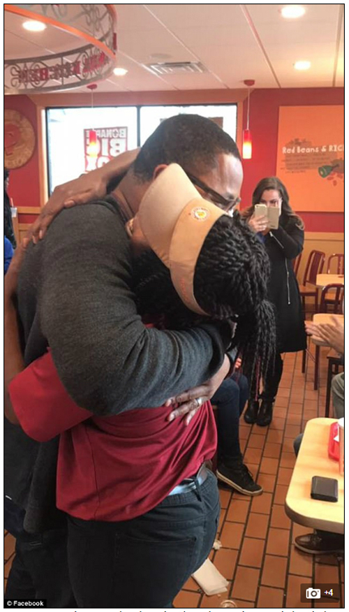 | 미국 미주리주 캔자스시티 전직 경찰관 도널드 카터가 간호조무사 준비 중이라는 패스트푸드점 아르바이트생 메이스의 사연을 최근 알고는 모금운동 사이트에서 네티즌 도움을 청했다가 목표액 두 배가 넘는 돈을 모아 화제다. 영국 데일리메일 캡처. |
