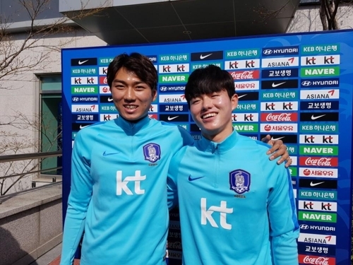 20세 이하 축구대표팀 정태욱(왼쪽)과 이상민이 11일 파주 축구대표팀트레이닝센터(NFC)에서 열린 소집 훈련을 앞두고 포즈를 취하고 있다.