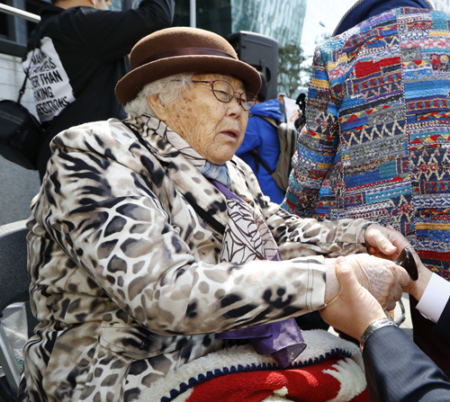 부산 출신인 이 할머니는 14세 때 중국 옌지(延吉)로 끌려가 3년간 일본군 위안부로 고초를 겪었다. 이 할머니는 해방 후에도 중국에 머물다 58년 만인 2000년 6월 귀국해 이듬해 국적을 회복했다. 이 할머니는 2002년 미국 브라운대 강연을 시작으로 일본, 호주 등지를 거의 매년 방문해 위안부의 참상을 세계인들에게 알렸다. 지난해에도 강일출(89) 할머니와 함께 미국 대학 등으로 해외순회 증언을 다녀왔다.