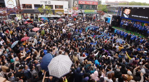 [포토] 빗속 문재인 후보 유세 열기 입력 : 2017-04-18 17:29:17 수정 : 2017-04-18 17:29:17 구글 네이버 유튜브 문재인 더불어민주당 대선후보의 유세가 열린 18일 오후 전북 전주시 전북대학교 유세장에서 우산을 받쳐 쓴 시민들이 연설을 지켜보고 있다. 전주=이제원기자 Copyright ⓒ 세계일보. 무단 전재 및 재배포 금지 Cube 이제원