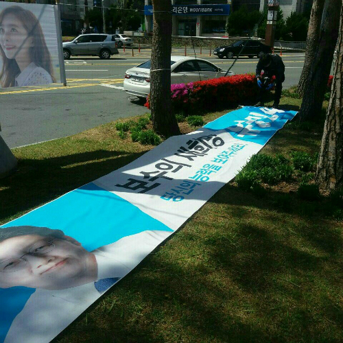 A씨는 지난 18일 오전 11시쯤 부산시 수영구의 한 은행 앞 가로수에 걸린 바른정당 유승민 대선후보의 선거 현수막 끈을 커터칼로 자른 혐의를 받고 있다.