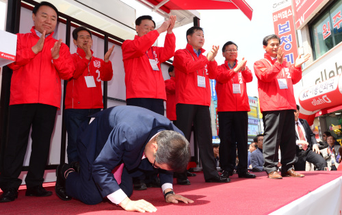 [포토] 큰절하는 홍준표 후보 입력 : 2017-04-24 13:16:49 수정 : 2017-04-24 13:16:48 구글 네이버 유튜브 자유한국당 홍준표 대선 후보가 24일 오전 강원도 원주시 중앙시장 앞 유세장에 유권자들에게 지지를 호소하며 큰절을 하고 있다. 원주=남정탁 기자 jungtak2@segye.com Copyright ⓒ 세계일보. 무단 전재 및 재배포 금지 Cube 남정탁