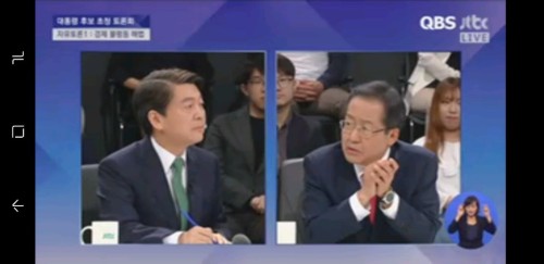 안 후보는 이날 첫번째 자유토론을 맞아 첫 질문자로 홍 후보를 택했다.