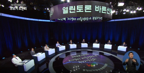| 중앙선거방송토론위원회 주관으로 지난 24일 밤 방송된 KBS '제19대 대통령선거 후보자 토론회'에 참가한 군소정당 후보들의 모습. |